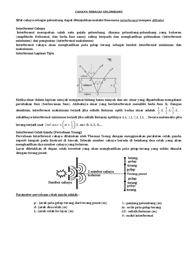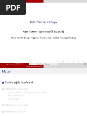 Interferensi Cahaya Agus Suroso Fisika Teoretik Energi Tinggi Dan Instrumentasi Institut Teknologi Bandung Pdf Free Download