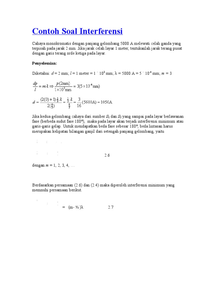 Contoh Soal Interferensi Celah Ganda Dan Penyelesaiannya Soalfismat Com