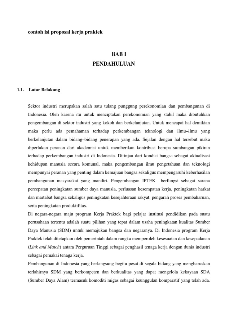 Contoh Isi Proposal Kerja Praktek