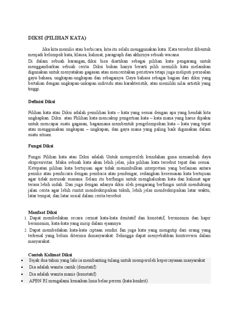 Diksi Pengertian Contoh Syarat Ciri Fungsi Jenis