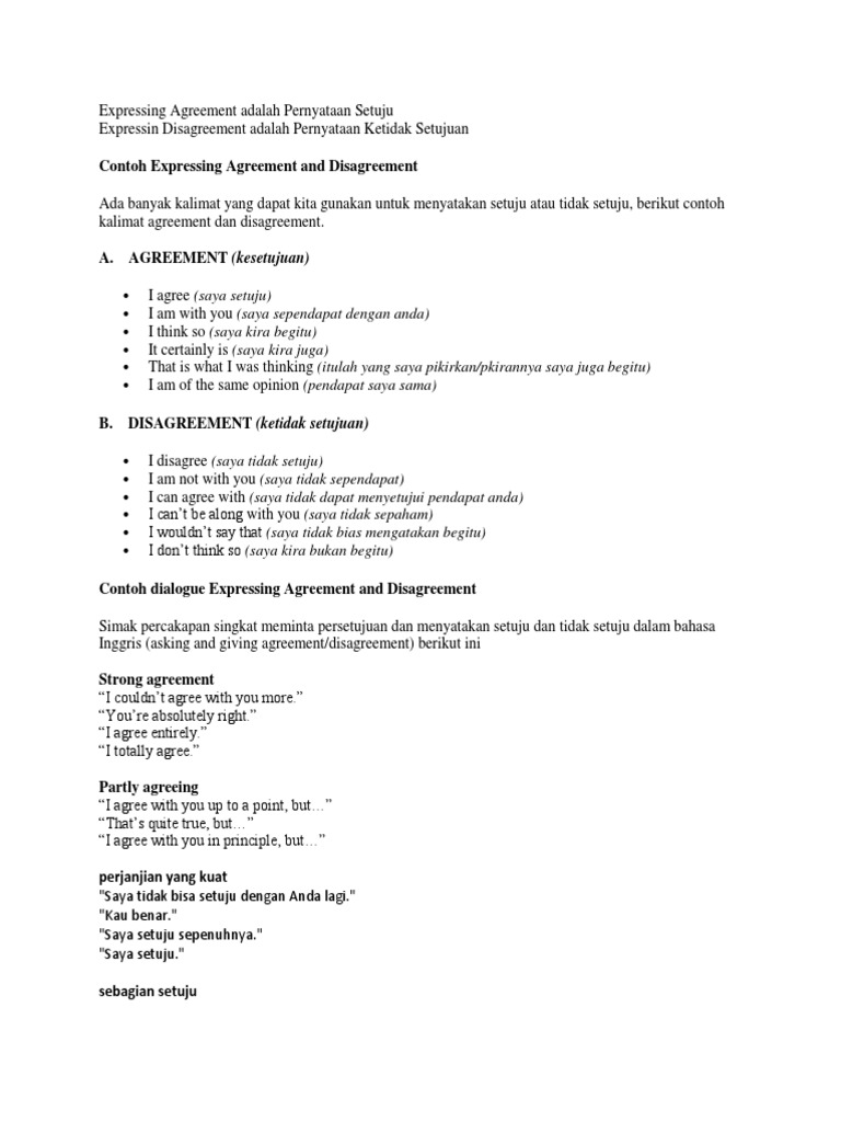 Contoh Expressing Agreement And Disagreement Docx Indonesian Language English Language