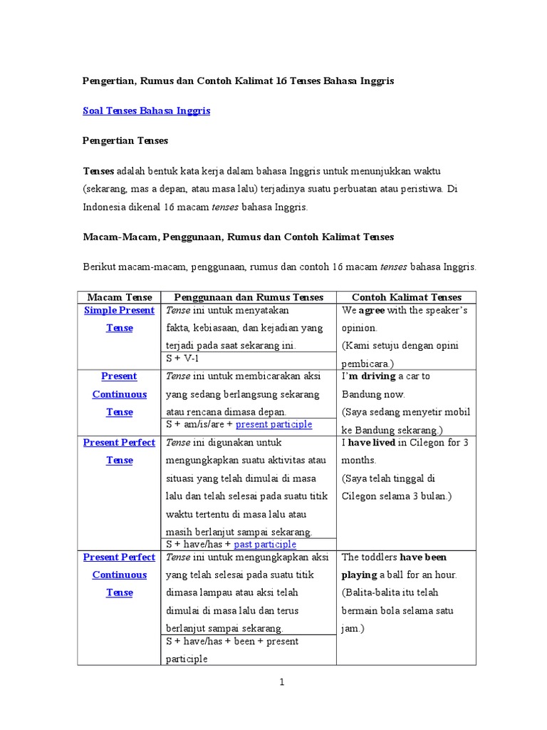 Soal Tenses Bahasa Inggris Tense Ini Untuk Menyatakan