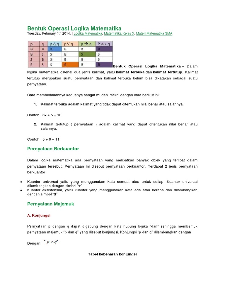 Logika Matematika Rumus Tebel Konjungsi Disjungsi Contoh Soal