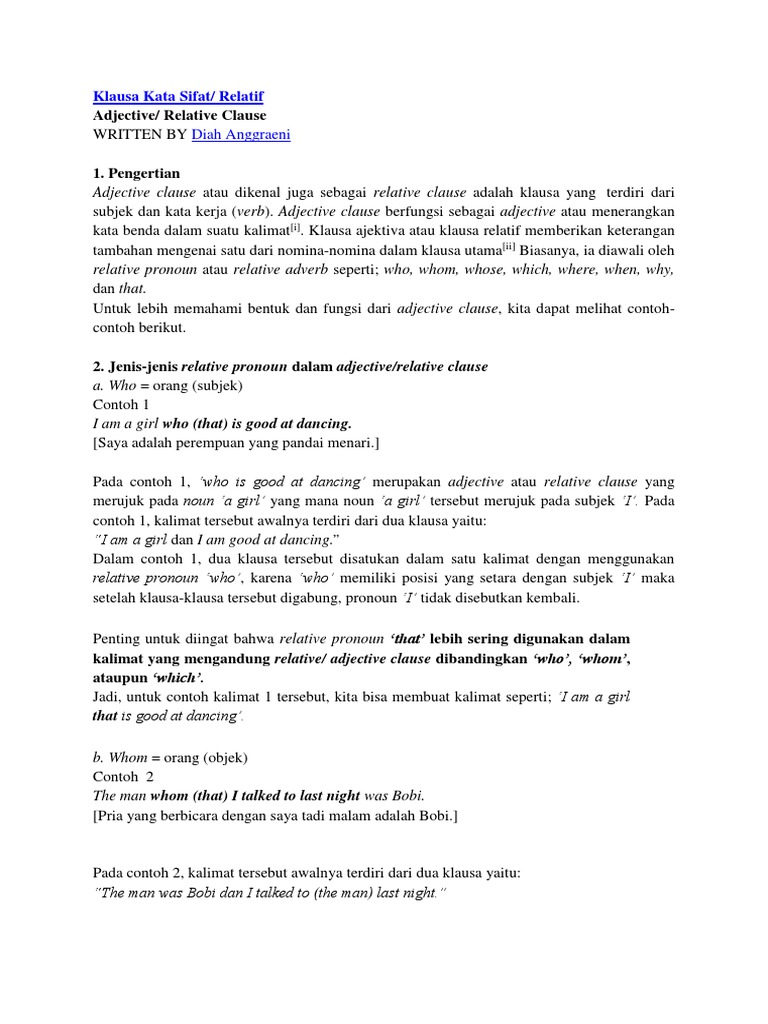 10 Contoh Kalimat Adjective Clause Docx Eljqgzkwpv41