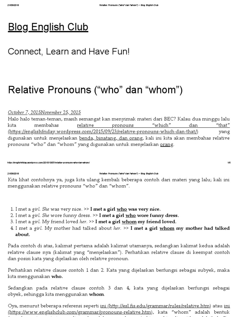 Relative Pronouns Who Dan Whom Blog English Club