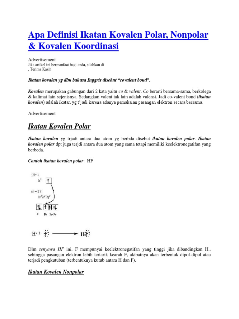Doc Apa Perbedaan Ikatan Kovalen Polar Nonpolar Dan Koordinasi Putry Andiany Academia Edu