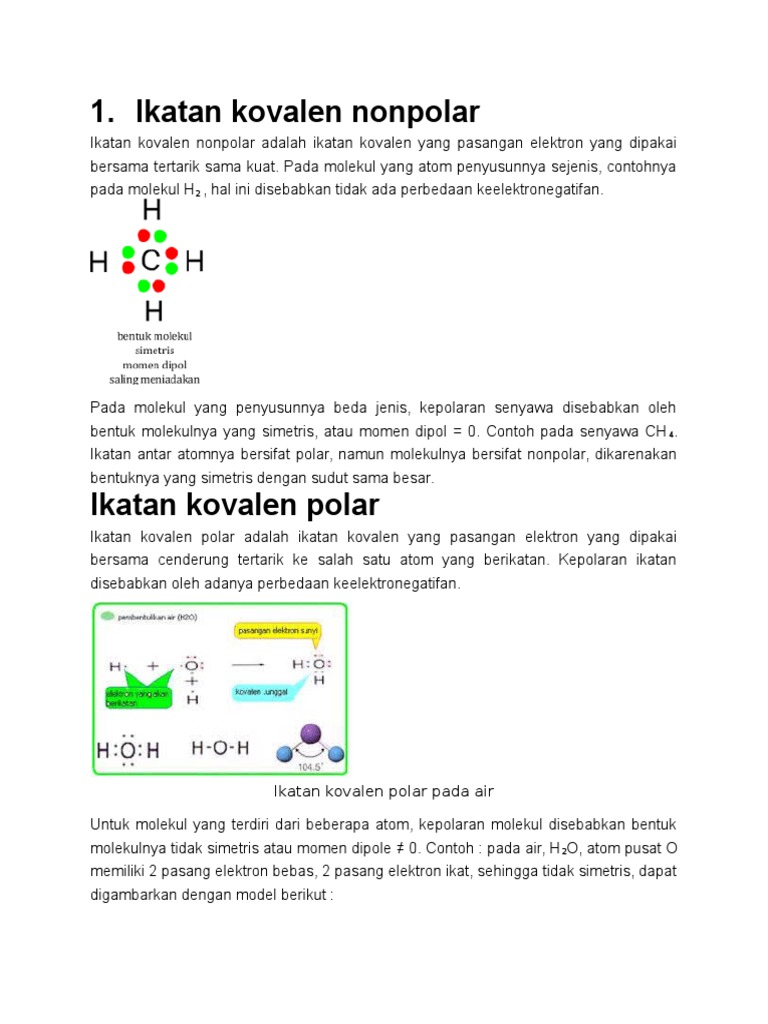 Ciri Ciri Ikatan Ion Ikatan Kovalen Polar Dan Nonpolar Brainly Co Id