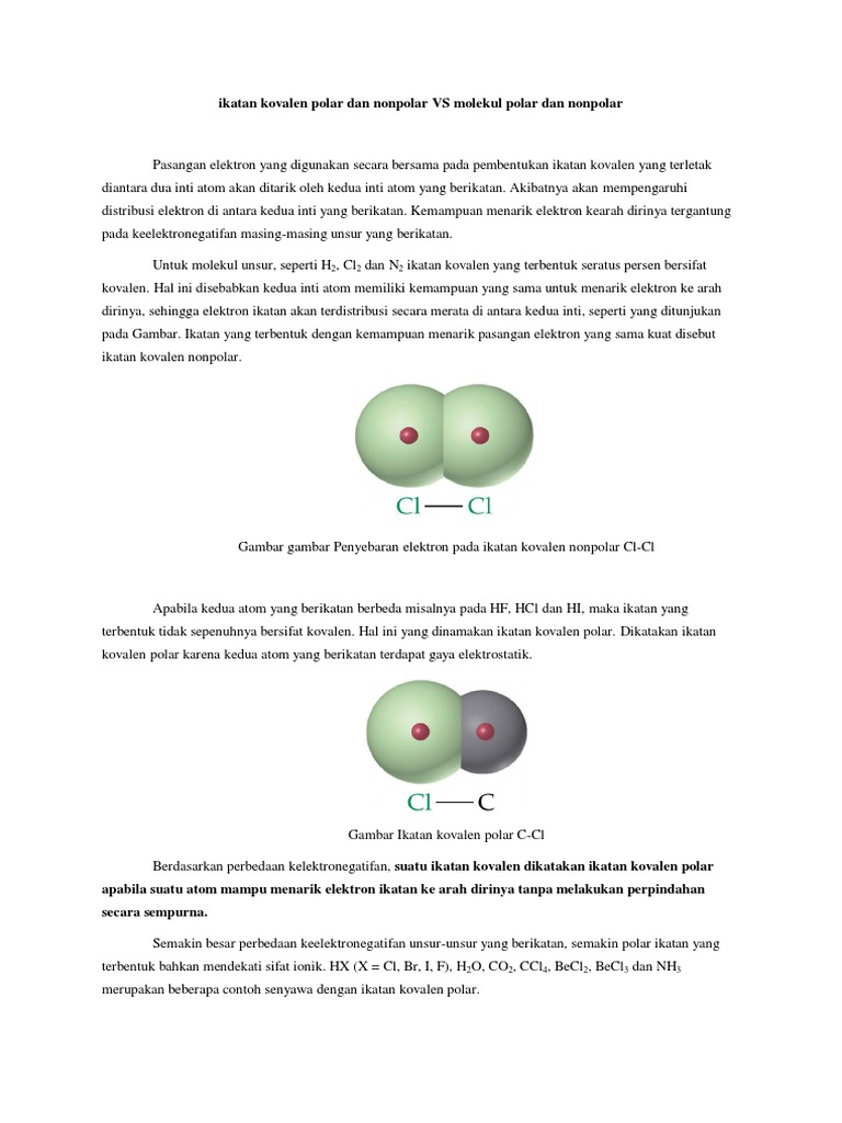 Ikatan Kovalen Polar Dan Non Polar Serta Hubungan Keelektronegatifannya