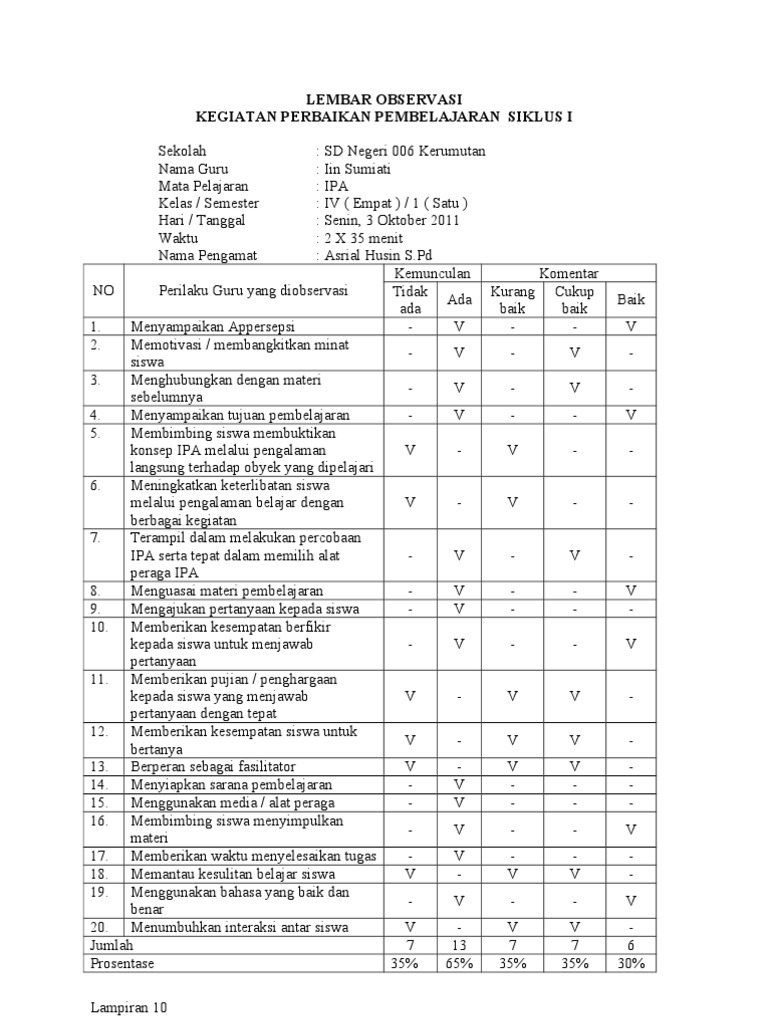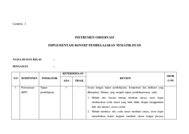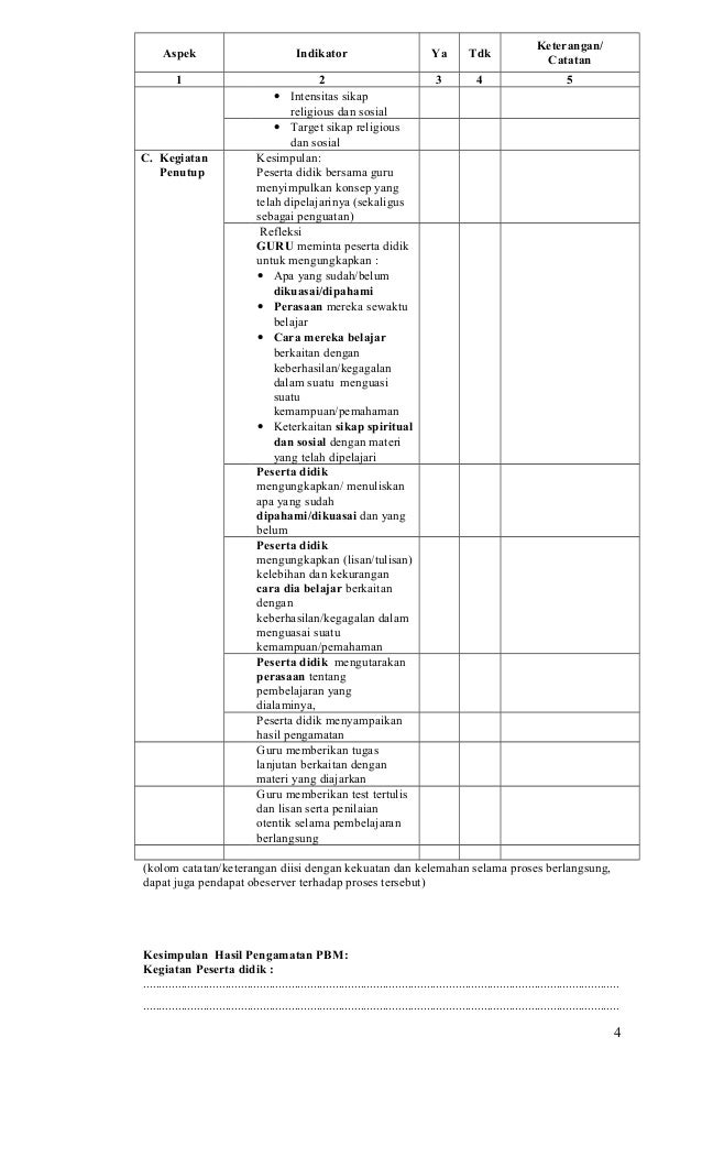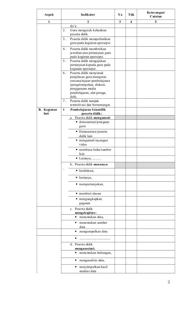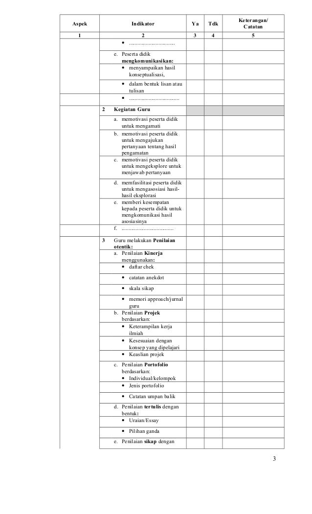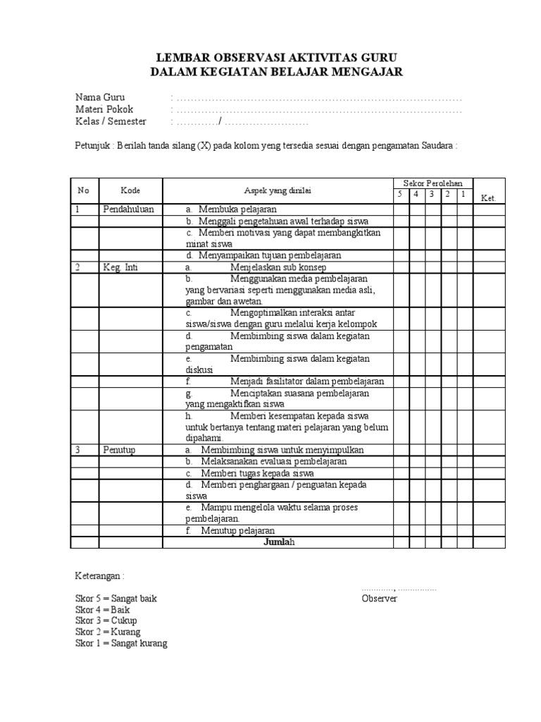 Contoh Lembar Observasi Praktik Pembelajaran K13 Di Kelas