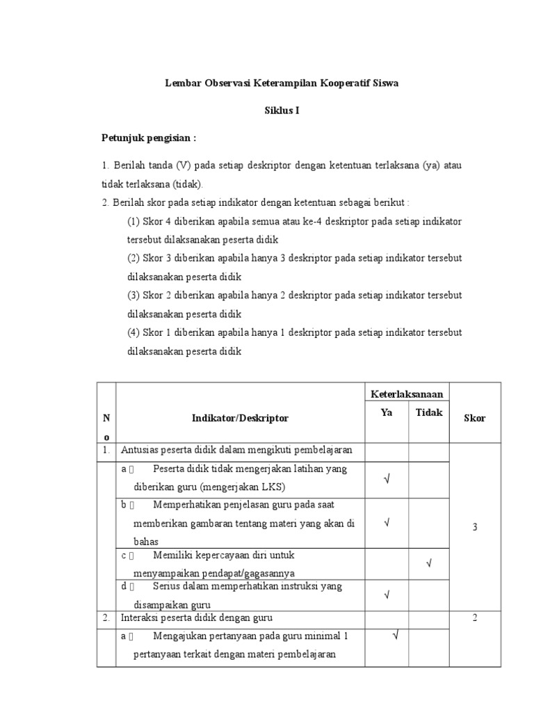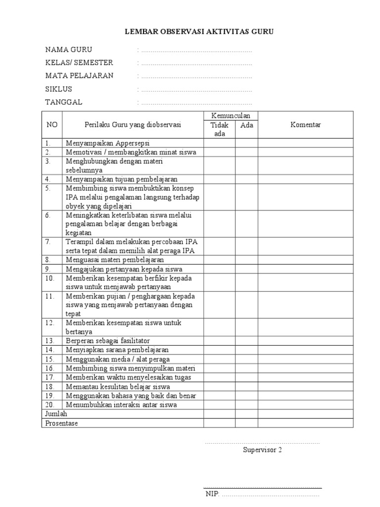 Download Contoh Lembar Observasi Aktivitas Belajar Siswa Yang Mudah Dan Simple Belajar Mengajar