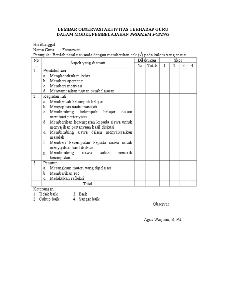 Pdf Lembar Observasi Ptk Ahmad Sholahuddin Academia Edu