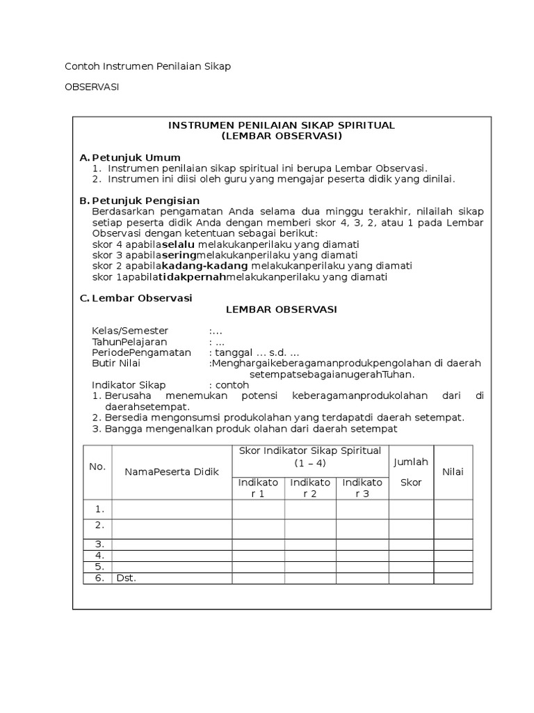 Contoh Instrumen Penilaian Sikap Observasi 34wm7wym2jl7