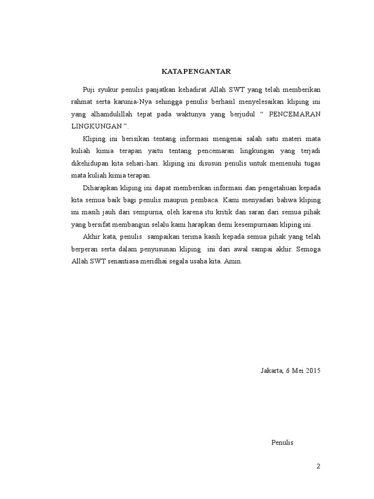 Kata Pengantar Daftar Isi Kliping Pencemaran Lingkungan