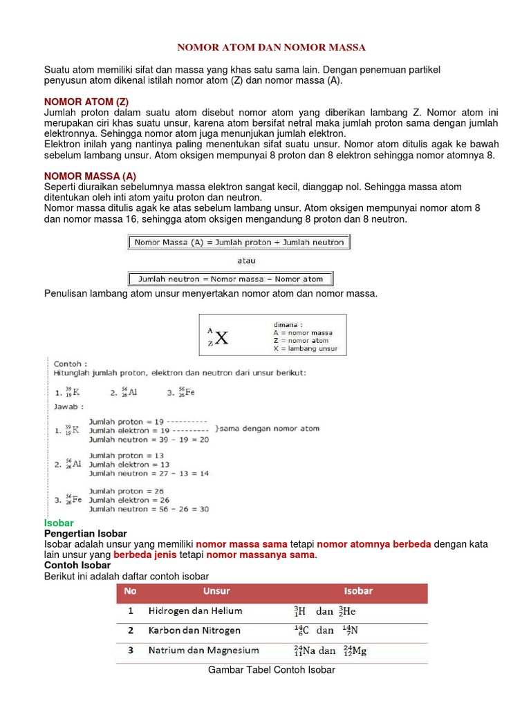 Nomor Atom Nomor Massa Isotop Isobar Isoton