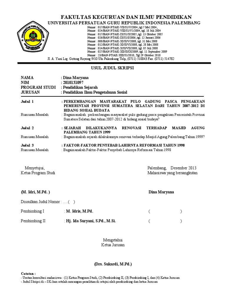 Contoh Usul Judul Skripsi Sejarah