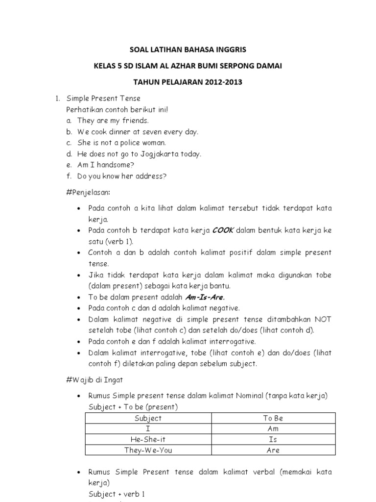 Rumus Contoh Dan Latihan Soal Simple Present Tense Yureka Education Center
