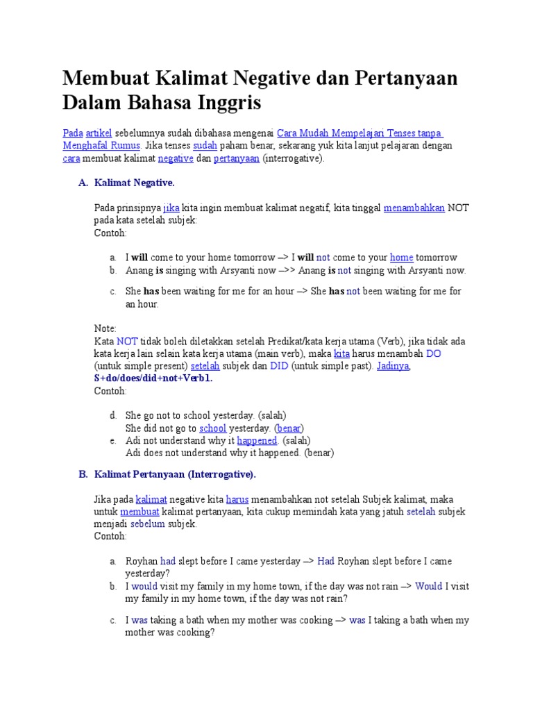 Membuat Kalimat Negative Dan Pertanyaan Dalam Bahasa Inggris Doc