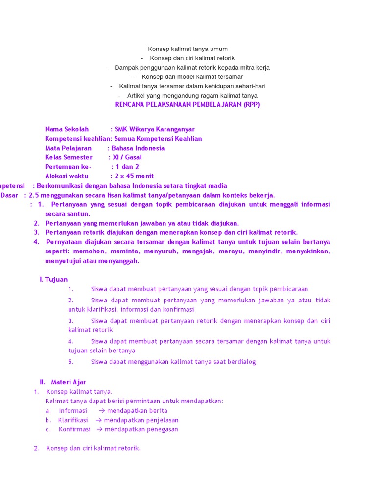Jenis Jenis Kalimat Tanya Dan Kata Tanya Klarifikasi Retoris Tersamar Dan Biasa Padahakan