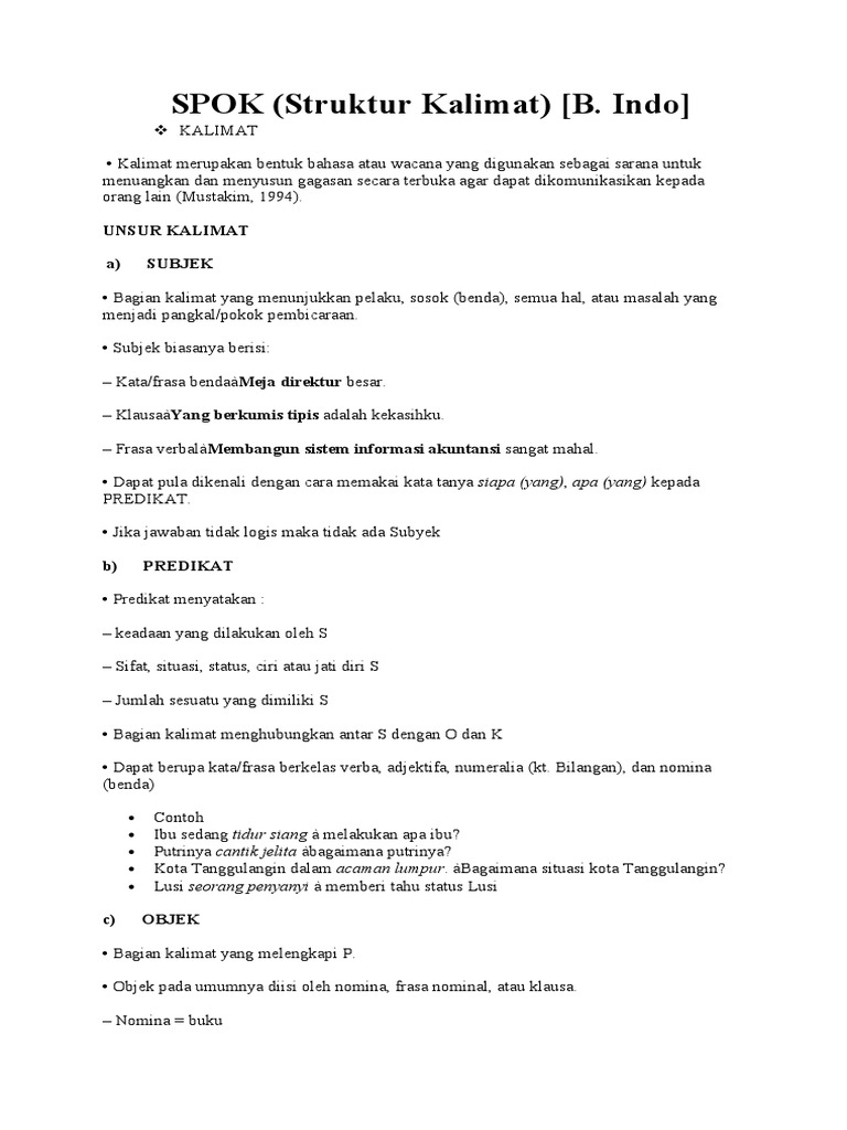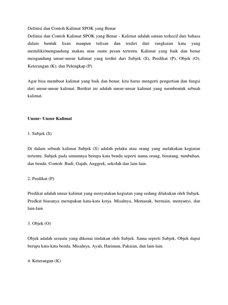 Definisi Dan Contoh Kalimat Spok Yang Benar
