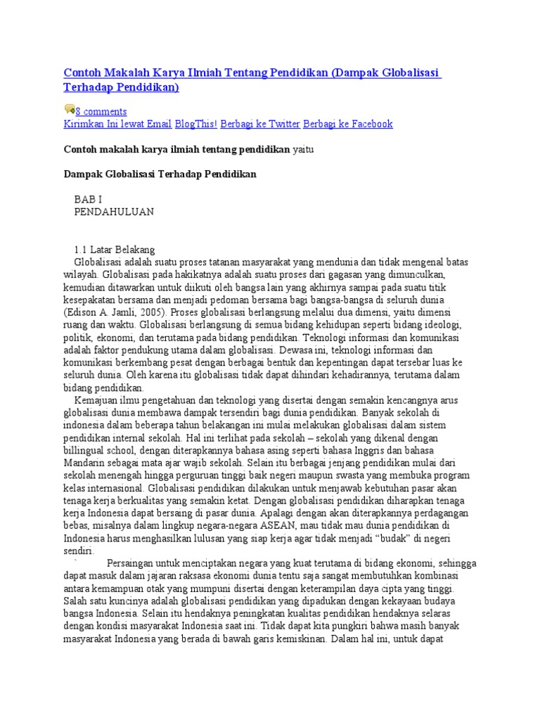 Contoh Makalah Karya Ilmiah Tentang Pendidikan Dampak Globalisasi Terhadap Pendidikan Contoh Makalah Edukasi Baru