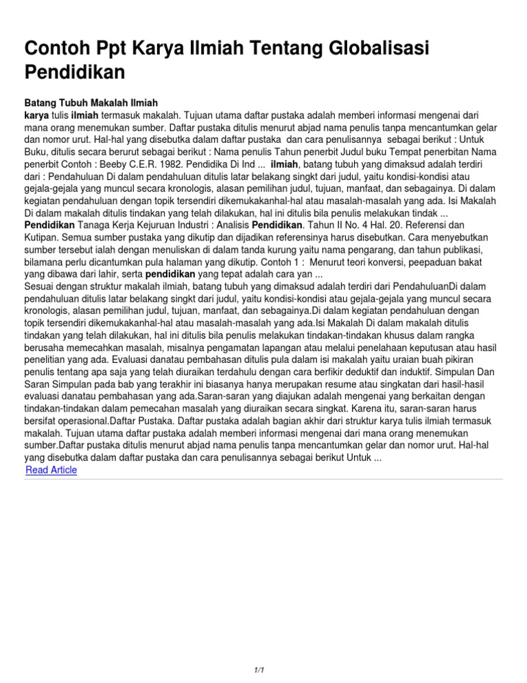 Contoh Ppt Karya Ilmiah Tentang Globalisasi Pendidikan