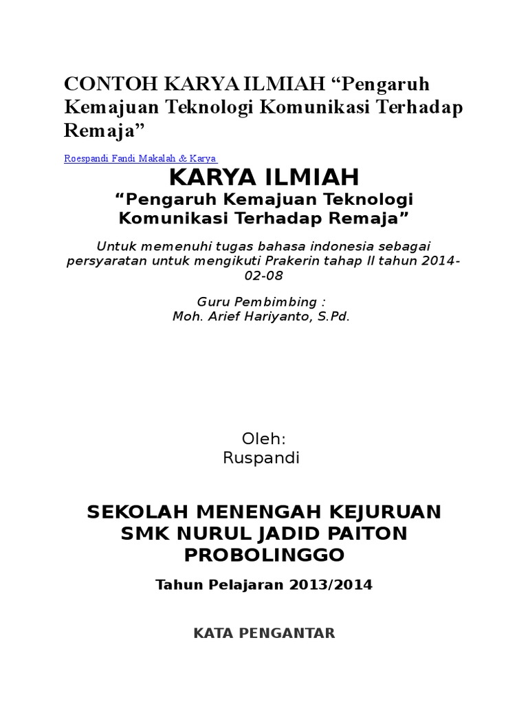 Karya ilmiah pengaruh kemajuan teknologi komunikasi terhadap remaja kata pengantar.