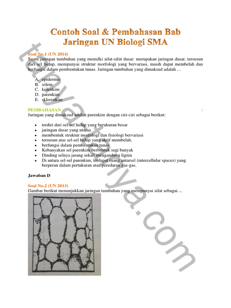 Contoh Soal Struktur Dan Fungsi Jaringan Tumbuhan Idschool