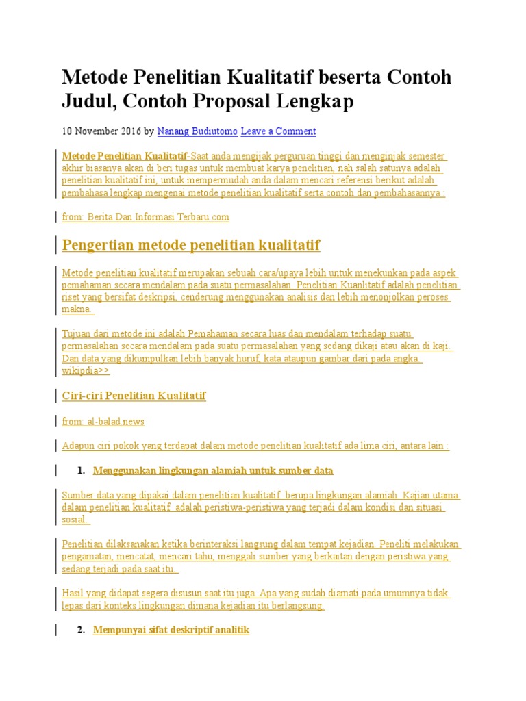 Metode Penelitian Kualitatif Beserta Contoh Judul Contoh Proposal Lengkap Proposal Proposal Writing Proposal Example