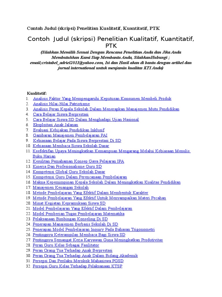 Contoh Judul Skripsi Kualitatif Pgsd Tahun 2016 Download Filenya Dengan Sekali Klik Karyatulisku