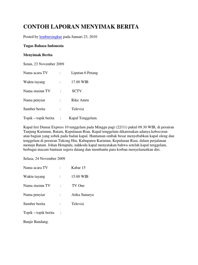 Contoh Kabar Berita