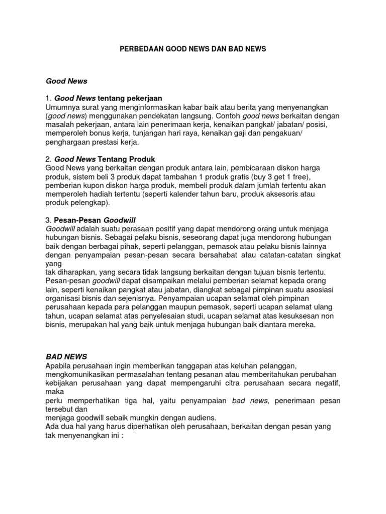 Perbedaan Good News Dan Bad News