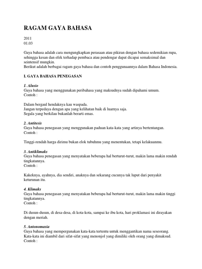 Gaya Bahasa Dalam Karya Sastra Ikatan Kata