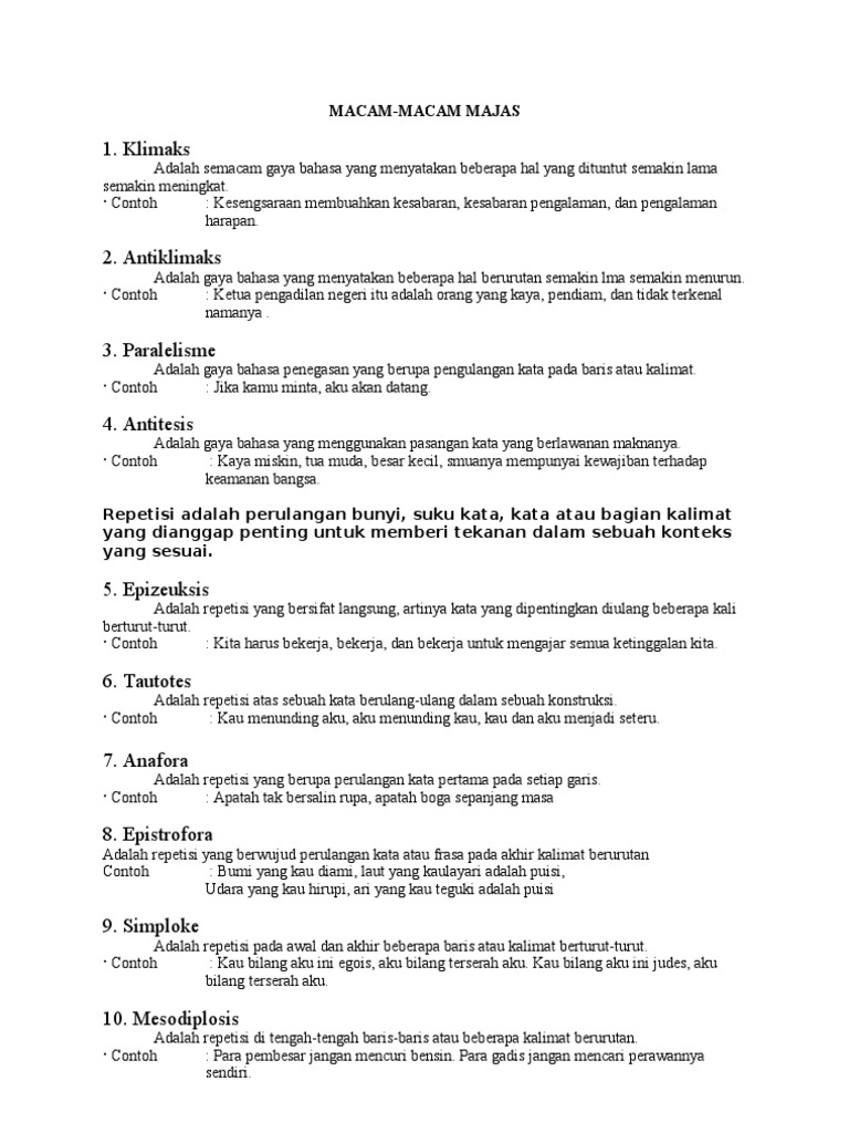 Doc Macam Macam Majas Beserta Contohnya Iin Agustian Academia Edu