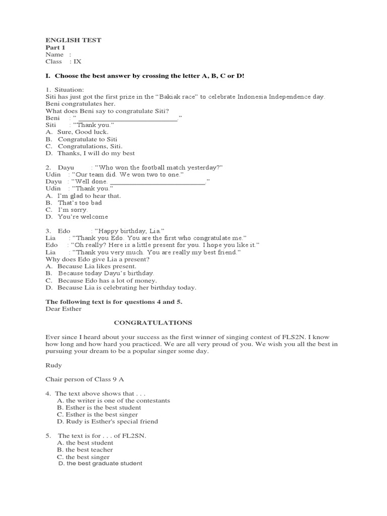 Contoh Soal Uts Ganjil Smp Kelas 9 Belajar Bahasa Inggris Online Gratis