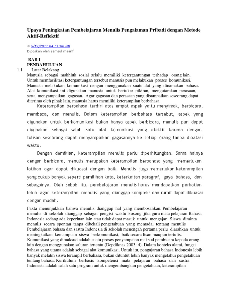 Upaya Peningkatan Pembelajaran Menulis Pengalaman Pribadi Dengan Metode Aktif