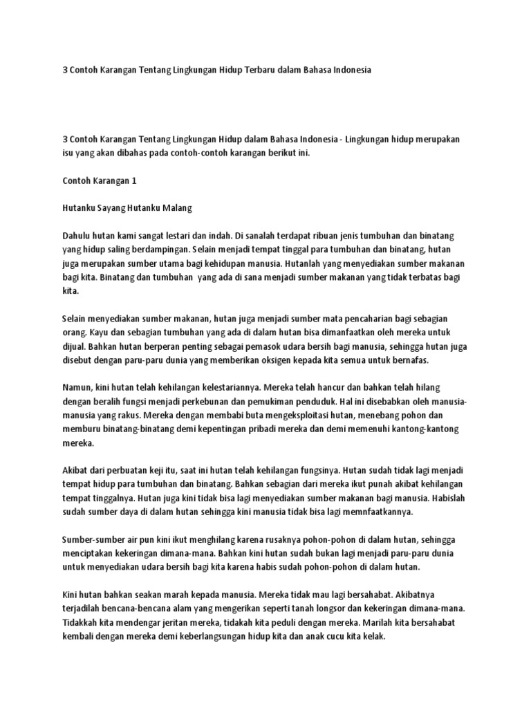3 Contoh Karangan Tentang Lingkungan Hidup Terbaru Dalam Bahasa Indonesia