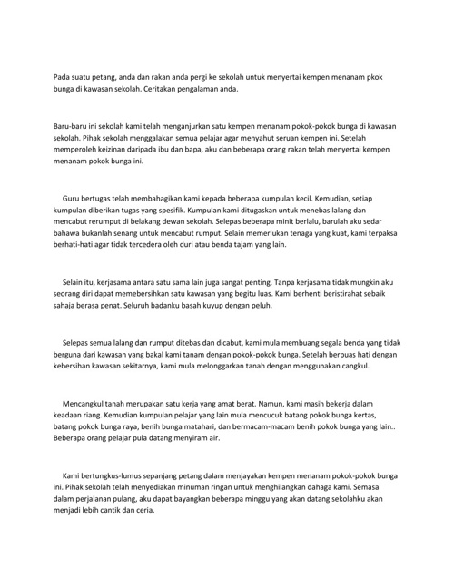 Contoh Contoh Karangan Sekolah Rendah Berita Kempen Mengindahkan Kawasan Sekolah