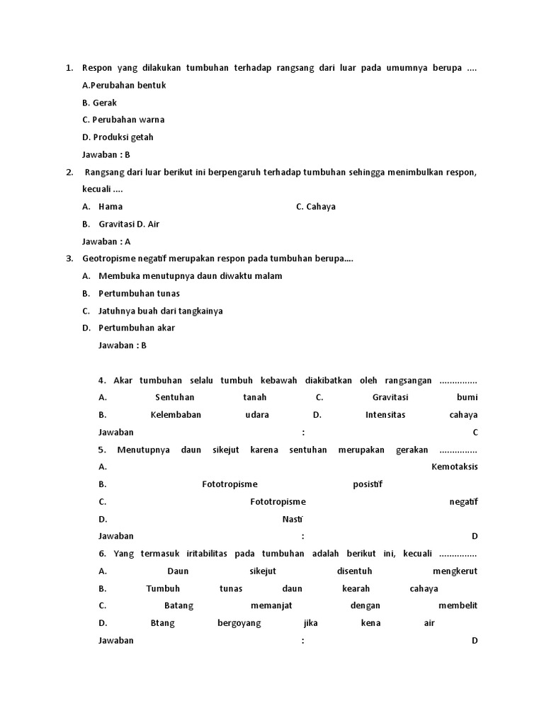 Soal Fotosintesis Dan Gerak Pada Tumbuhan K8