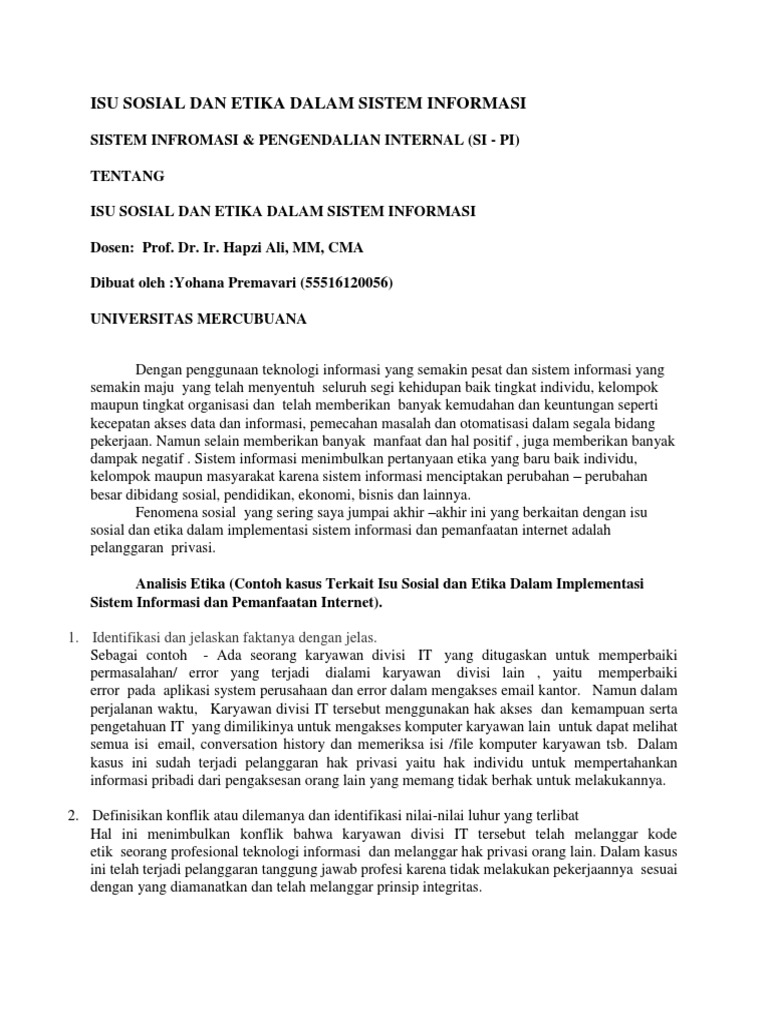 Isu Sosial Dan Etika Dalam Sistem Informasi