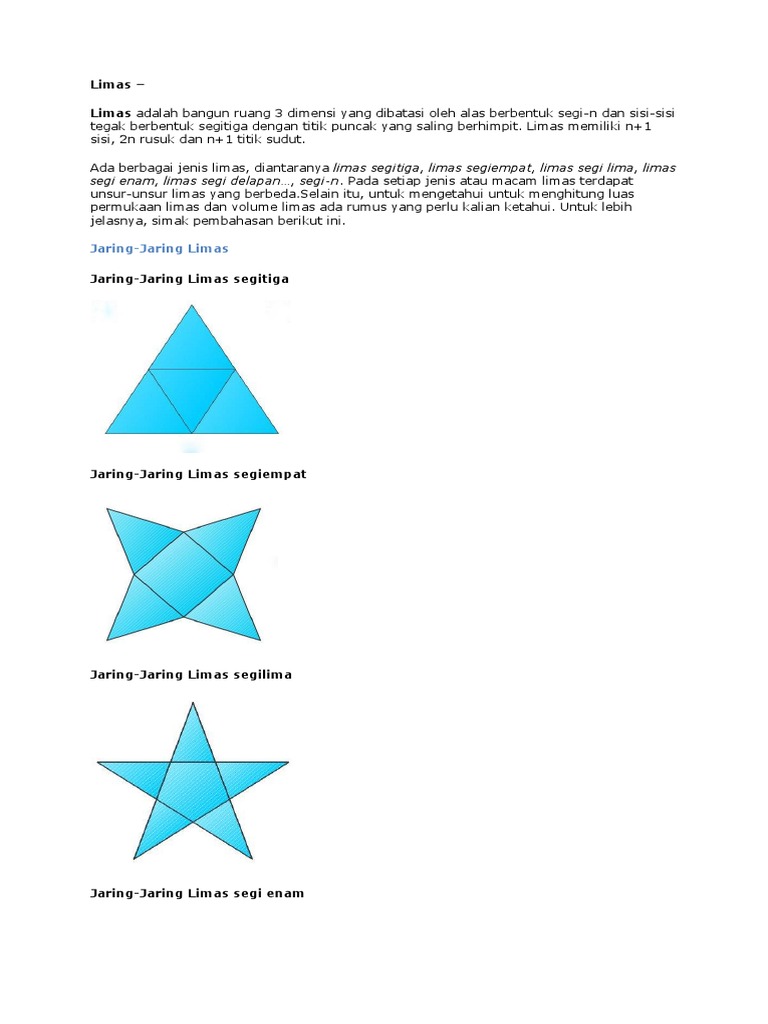 Jaring Jaring Limas Segitiga Segiempat Segilima Dan Segienam Berpendidikan Com