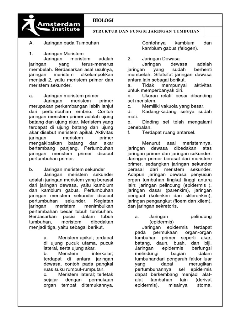 Pendidikan Biologi Star Jaringan Pada Tumbuhan Tingkat Tinggi Meristem Dan Dewasa