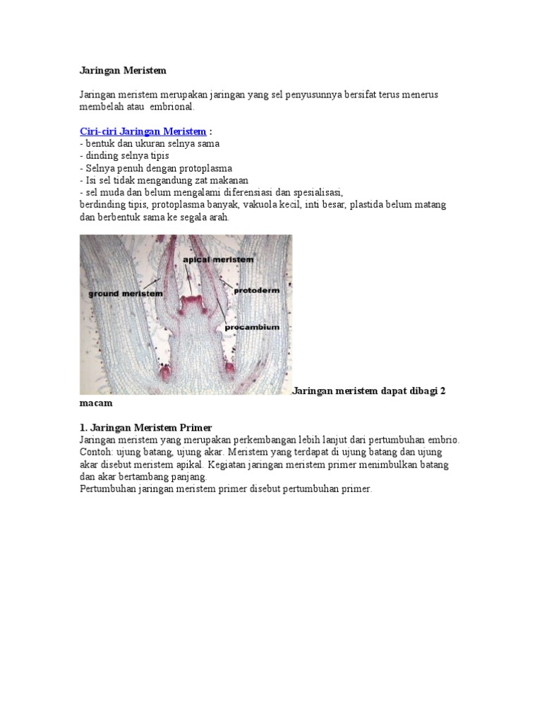 Jaringan Meristem Fungsi Sifat Ciri Letak Strukturnya