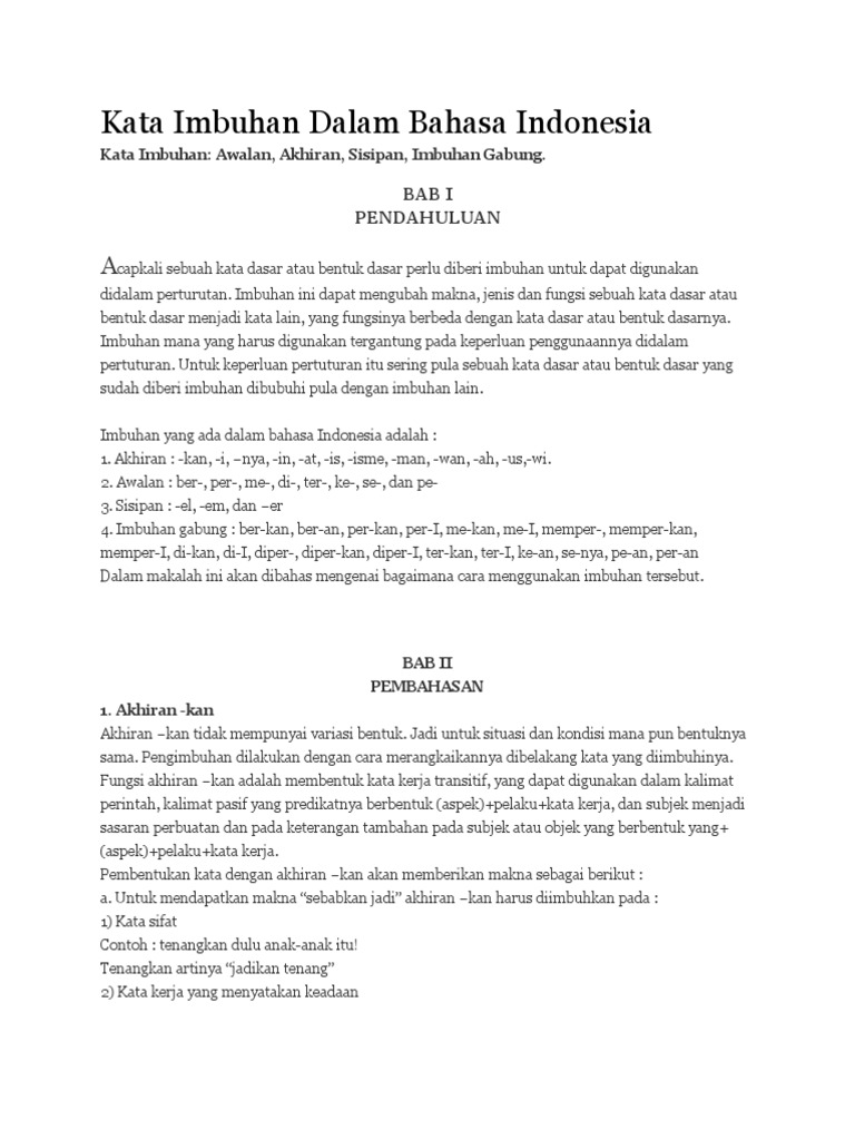 Kata Imbuhan Dalam Bahasa Indonesia