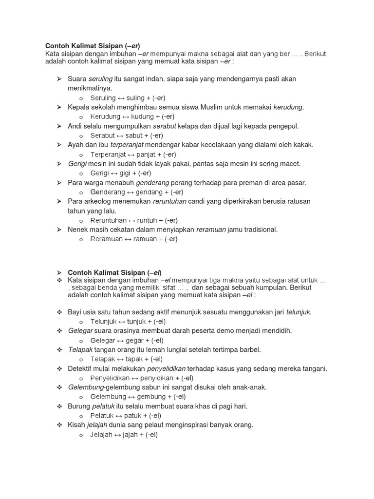 Buatlah Contoh Kata Sisipan El Em Er Brainly Co Id