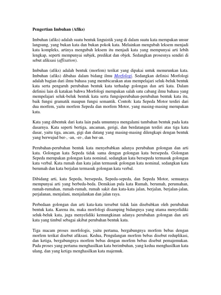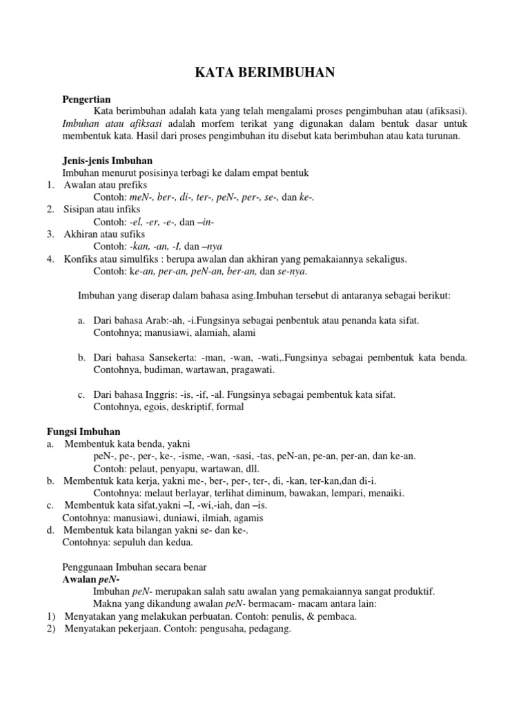 Pengertian Imbuhan 2 Docx Pengertian Imbuhan Imbuhan Berasal Dari Kata Dasar Imbuh Yang Berarti Tambahan Yang Tidak Banyak Imbuhan Mendapat Sufiks Course Hero