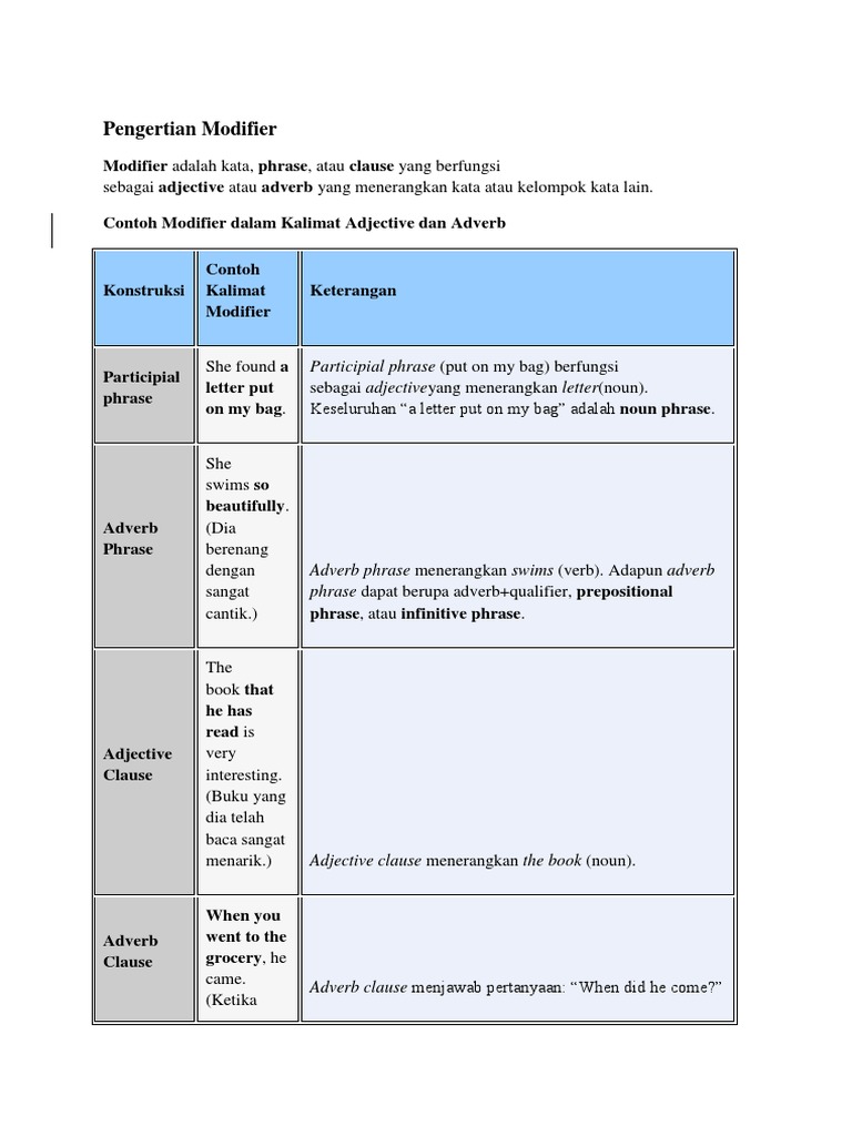 Pengertian Modifier Adverb Adjective