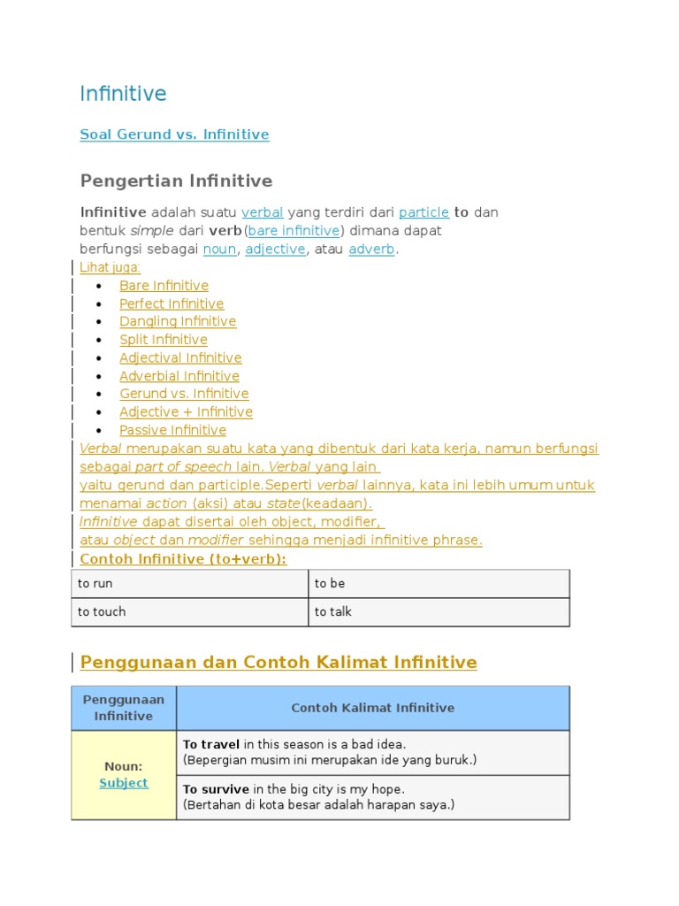 Pengertian Kegunaan Dan Contoh Kalimat The Infinitive Bukuinggris Co Id