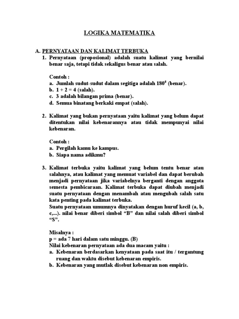 Logika Matematika Pernyataan Dan Kalimat Terbuka