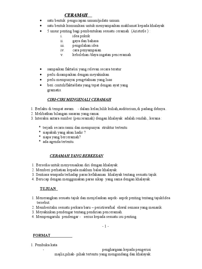 Karangan Jenis Ucapan Ceramah Dan Syarahan