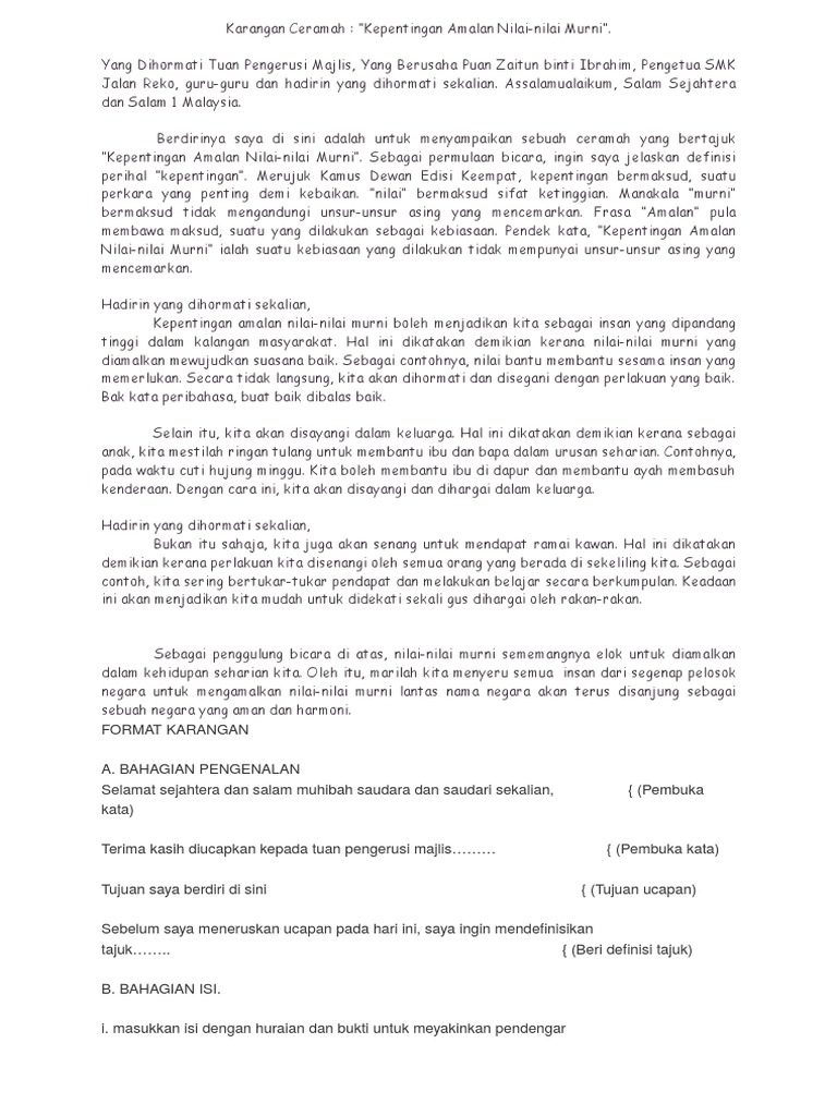 Contoh Karangan Ceramah Pt3 Untuk Subjek Bahasa Melayu